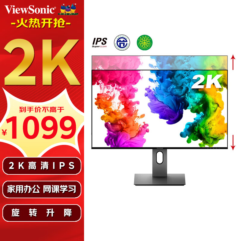 优派 27英寸 2K高清 IPS微边框 滤蓝不闪 升降旋转PS4双HDMI显示器电脑办公显示屏VX2780-2K-HD价格:1299.00元!