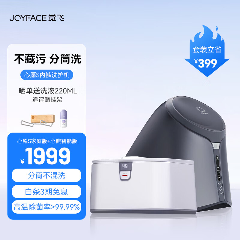 觉飞(JOYFACE)心愿S内衣裤洗衣机专用小型迷你全自动高温杀菌除菌煮清洗袜子 星空灰家庭版+心煦烘干机智能版价格:1999.00元!