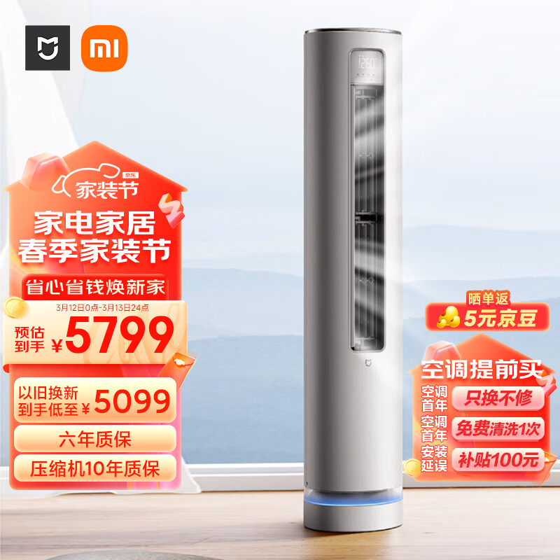 小米3匹 新一级能效 变频冷暖 智能自清洁 客厅圆柱空调立式柜机 米家 KFR-72LW/R1A1 以旧换新价格:5799.00元!