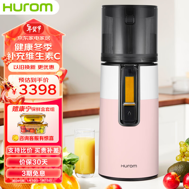 惠人(HUROM)原汁机 易清洗多功能无网大口径家用低速榨汁机 果汁机辅食机渣汁分离H400-BIC05(WP)价格:3398.00元!