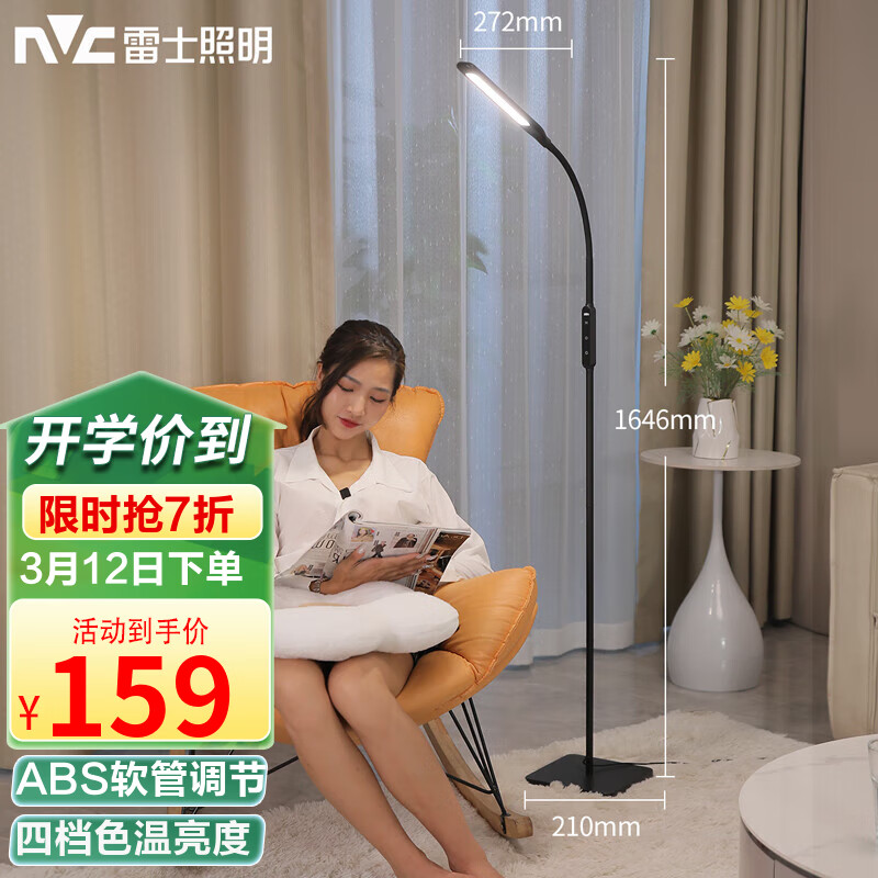 雷士(NVC)落地灯沙发客厅卧室书房护眼灯学生学习台灯床头阅读灯钢琴灯立式价格:226.00元!