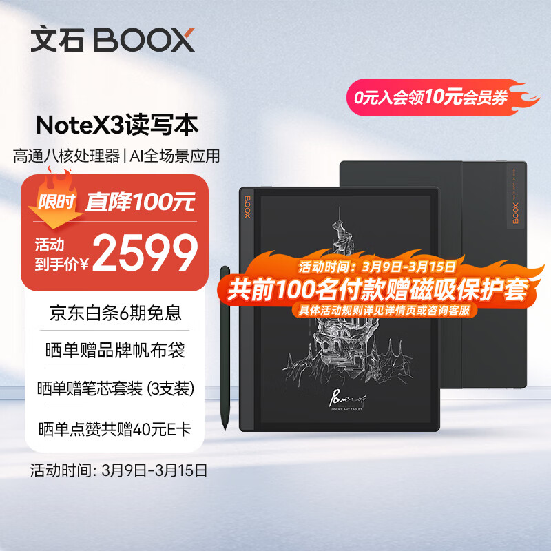 BOOX文石 NoteX3 10.3英寸电子书阅读器 墨水屏电纸书电子纸 智能办公学习平板 电子笔记本 语音转文字价格:2599.00元!