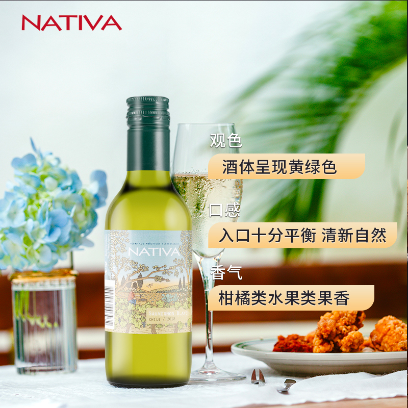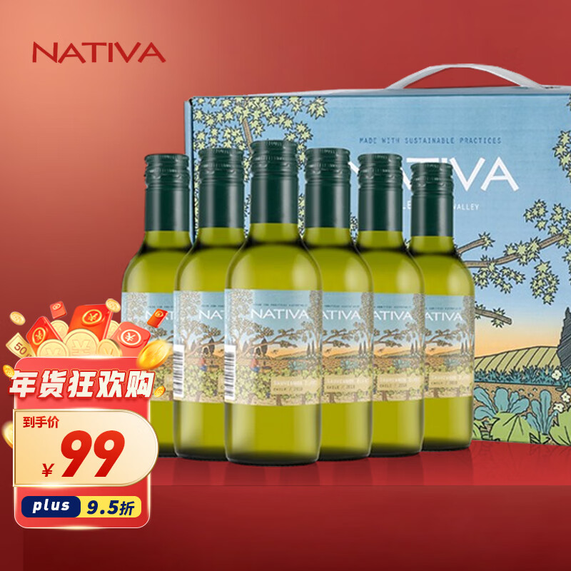 NATIVA 娜缇瓦 长相思小瓶干白葡萄酒 187.5ml*6瓶过年礼盒装 智利进口价格:99.00元!