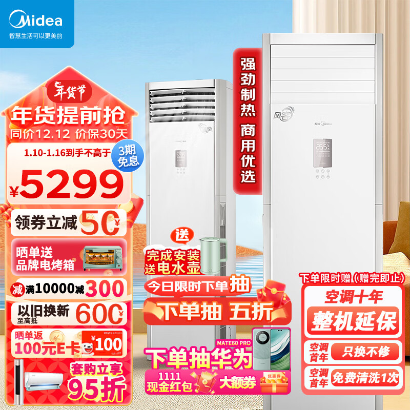 美的(Midea)空调柜机3匹 新能效变频冷暖两用 客厅企业立式大出风口空调 智能家电 以旧换新 风客MFB3价格:5299.00元!