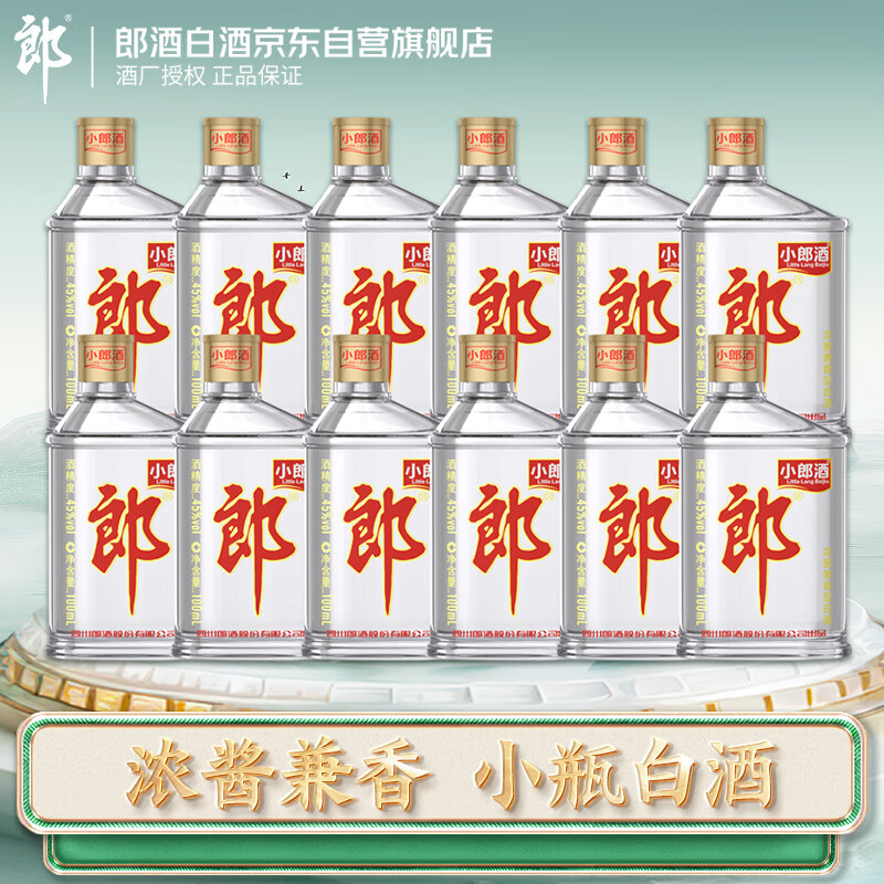郎酒 经典小郎酒 浓酱兼香型白酒 45度100ml*12瓶 整箱装 (非原箱)价格:228.00元!