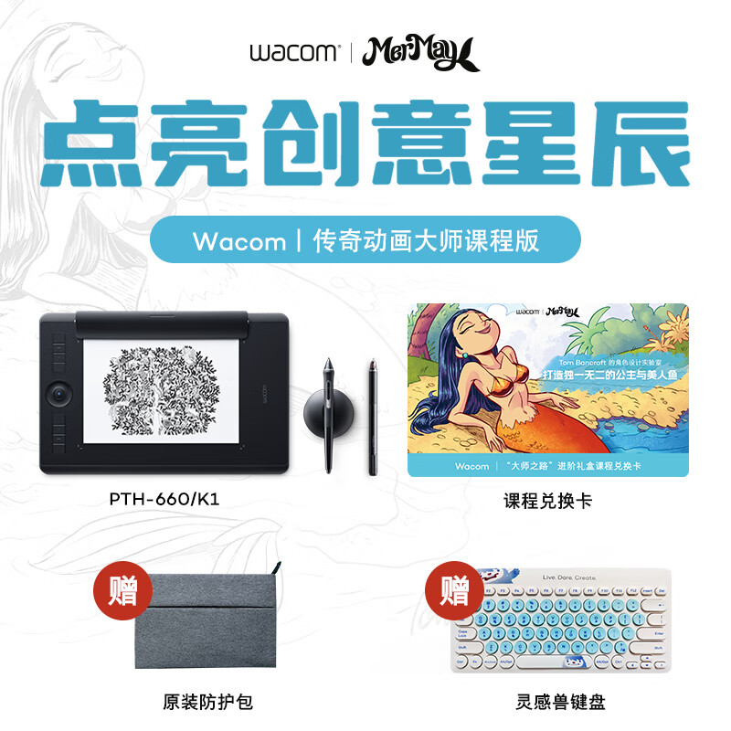 Wacom 和冠 数位板 手绘板 手写板 绘画板 电子画板 无线蓝牙触控 PTH-660/K1-F【传奇大师课程版】价格:2899.00元!