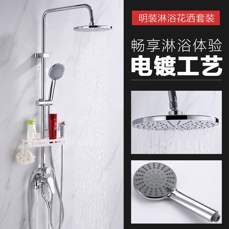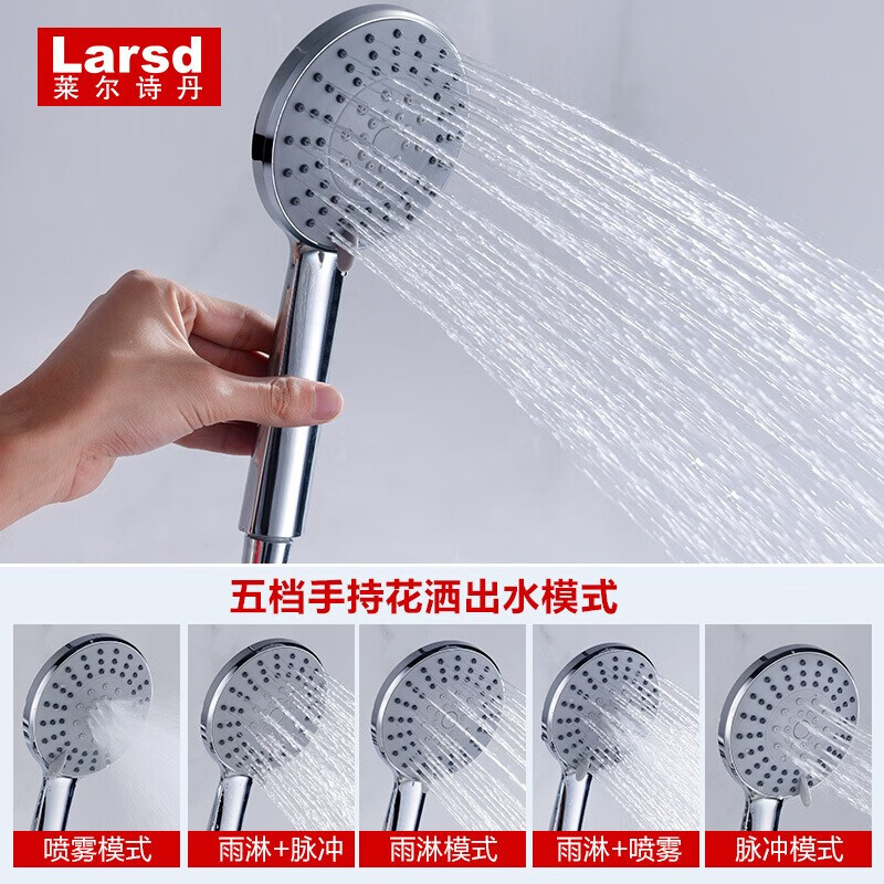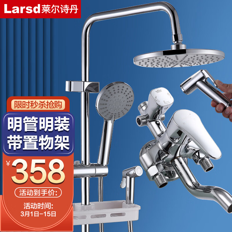莱尔诗丹(Larsd)明装淋浴花洒套装 明管花洒 四功能带喷枪带置物架 淋浴器LD5826价格:398.00元!