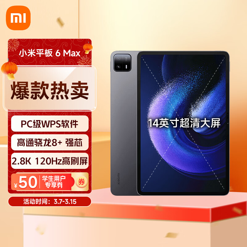小米平板6 MAX14英寸xiaomiPad高通骁龙8+ PC级WPS 2.8K 120Hz高刷 12+256GB大屏办公平板电脑黑色价格:3999.00元!