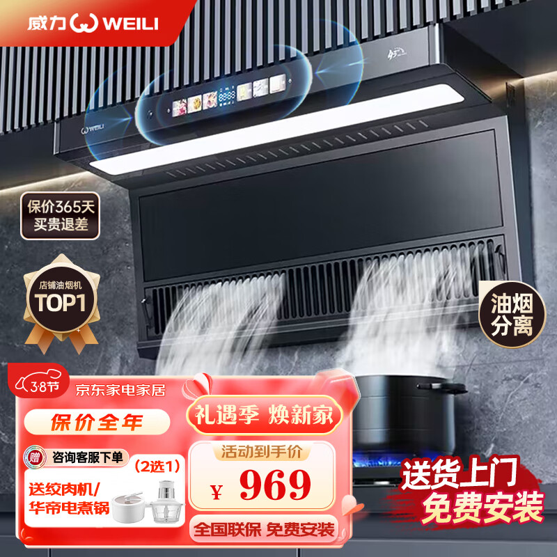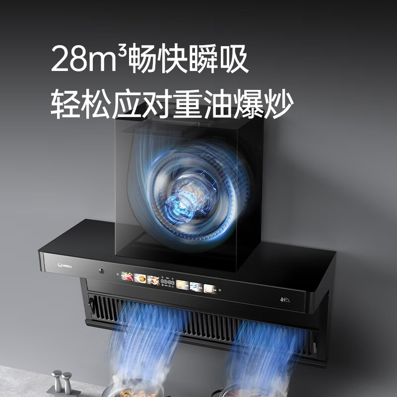 威力(WEILI)顶侧双吸油烟机家用7字型抽油烟机大吸力爆吸款28立方挥手感应 免拆洗家用烟机CXW-288-M05(Q07)价格:999.00元!