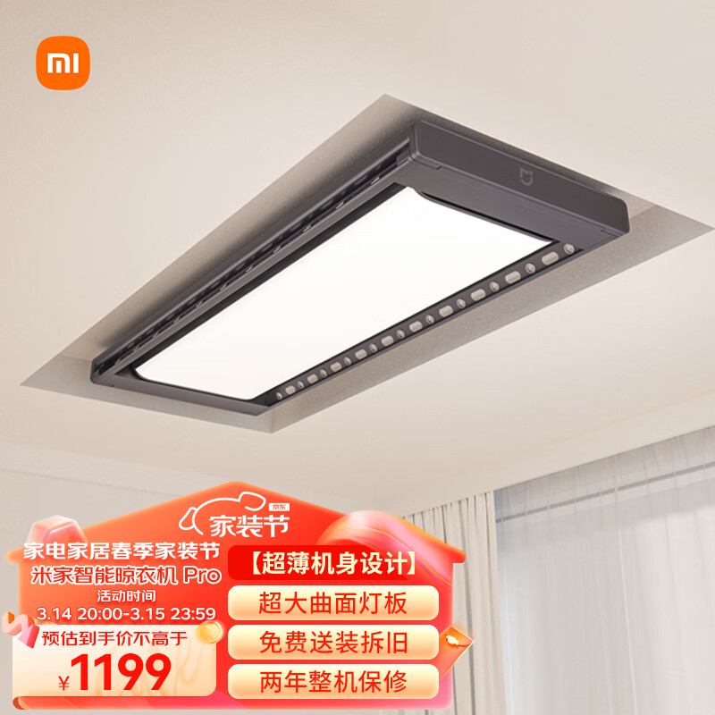 米家智能晾衣机Pro 电动晾衣架 超薄机身嵌入隐藏 无线遥控升降 小米价格:1299.00元!