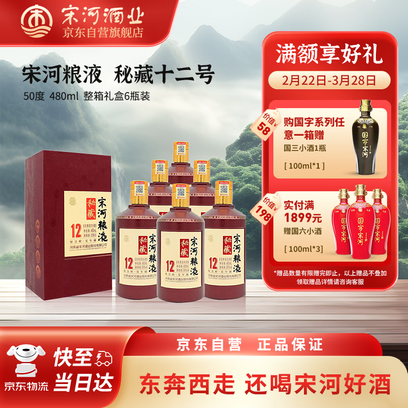 宋河粮液 秘藏12 浓香型白酒 50度 480ml*6瓶 礼盒整箱装 送礼价格:884.00元!