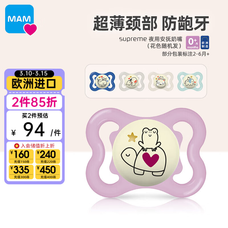 MAM美安萌Supreme夜光安抚奶嘴0-6个月婴儿安抚 欧洲进口价格:110.00元!