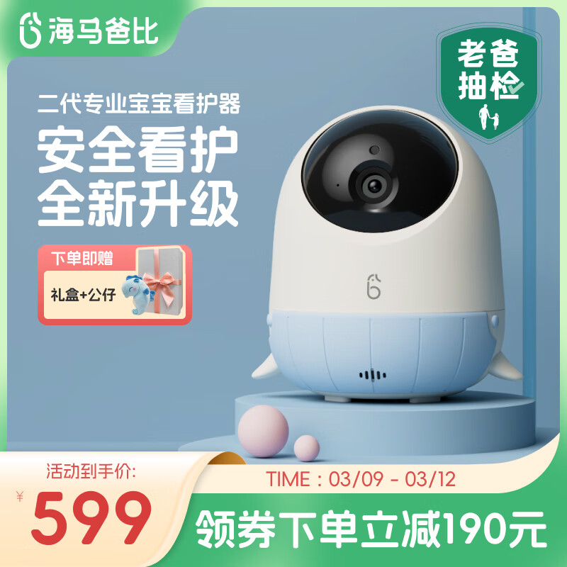 海马爸比【老爸 品质之选】二代婴儿看护机智能宝宝监护器哭声监测 元气蓝-守护版32G+支架价格:789.00元!