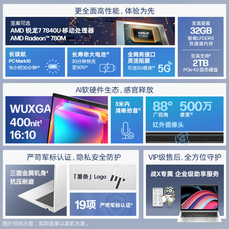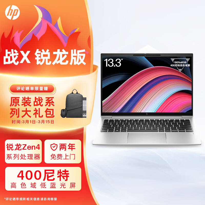惠普(HP)战X Zen4新锐龙 13.3英寸轻薄笔记本电脑(R7-7840U 16G 1TB 高色域低蓝光屏 2年上门 AI 高性能)价格:5799.00元!