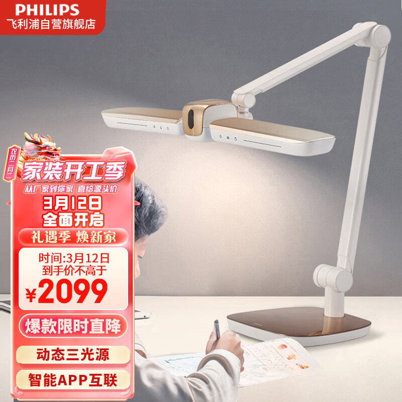 飞利浦(PHILIPS)护眼灯儿童学习台灯全光谱护眼台灯学生卧室阅读台灯A7Pro价格:3099.00元!