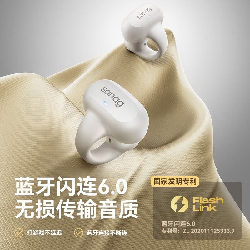 SANAG塞那【榜首推荐】骨传导概念蓝牙耳机开放式无线夹耳式不入耳挂耳式耳夹式运动通话降噪适用华为 幽雅白丨定制礼盒装价格:359.00元!