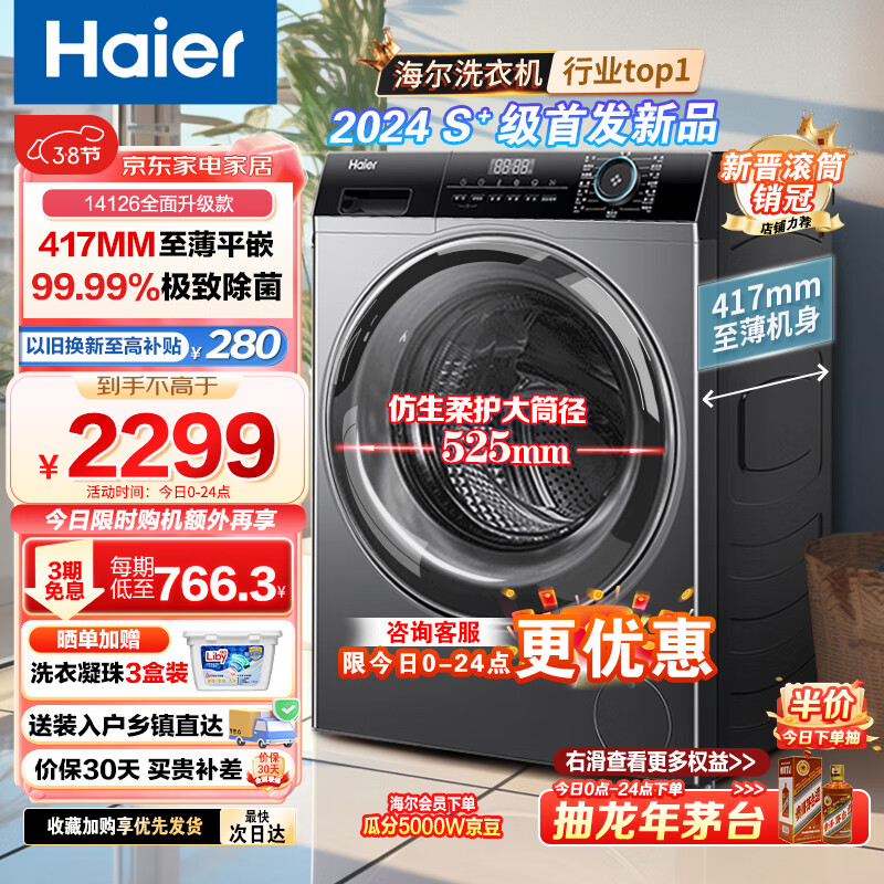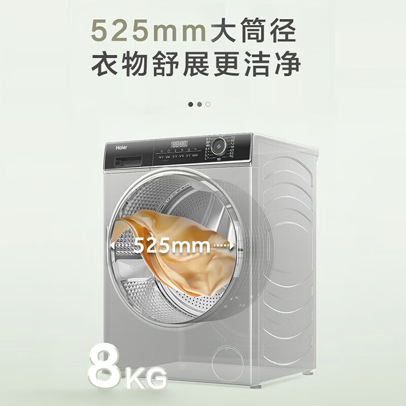 海尔(Haier)滚筒洗衣机8KG大容量全自动家用超薄平嵌变频羊毛羽绒洗大筒径筒自洁除菌螨 14126升级款MATE33s价格:2299.00元!