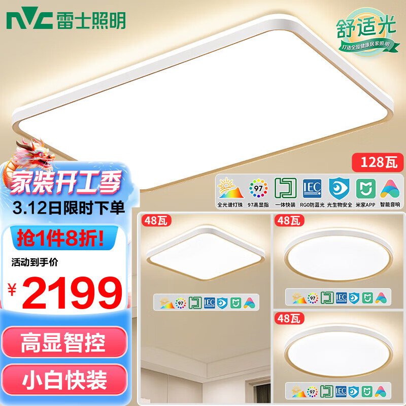 雷士(NVC)LED吸顶灯现代简约客厅卧室书房餐厅灯具全屋智控小白灯快装沐光D价格:2748.00元!