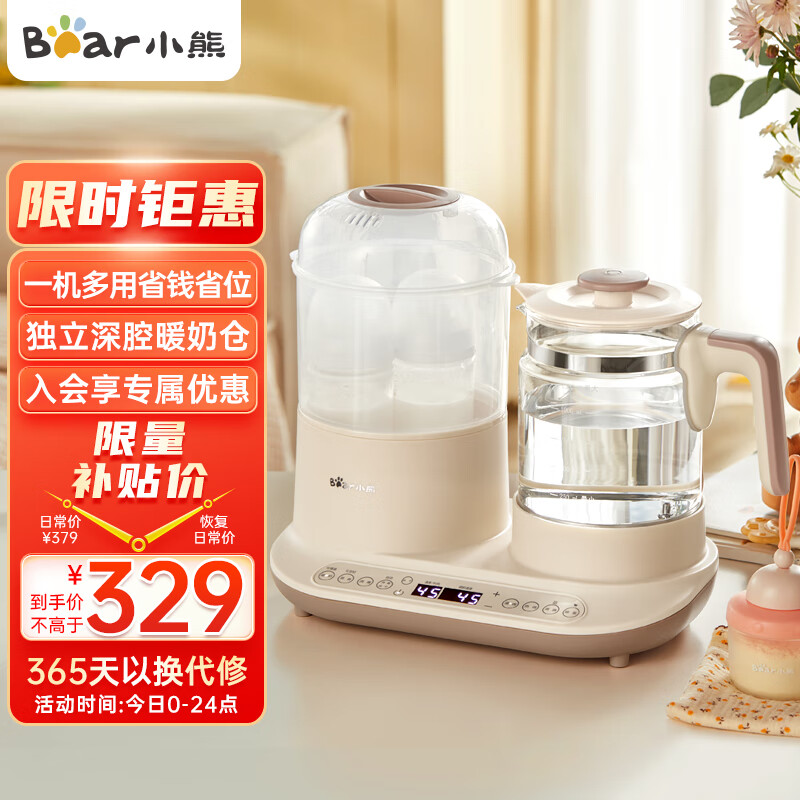 小熊(Bear)恒温水壶 恒温壶婴儿 调奶温奶暖奶瓶消毒器多合一TNQ-C12K5 1.2L价格:379.00元!