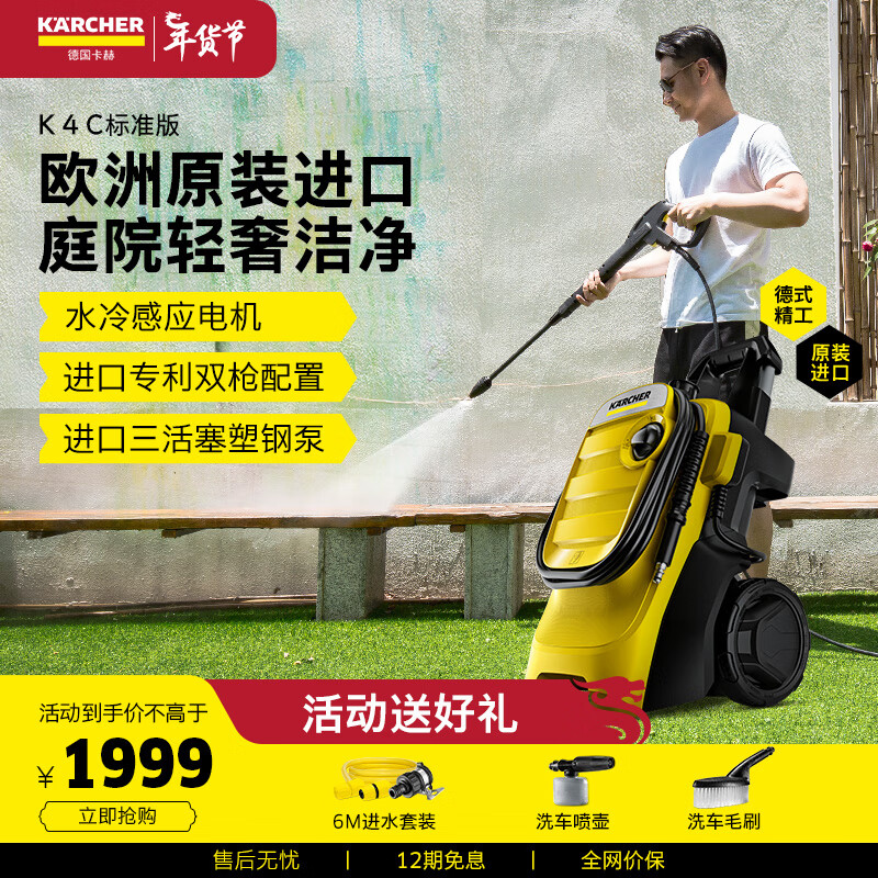 KARCHER德国卡赫家用洗车机高压水枪清洗机220V水冷感应K4C原装进口价格:2999.00元!