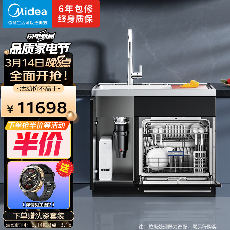 美的集成水槽变频洗碗机集成洗碗机 集成洗碗机XH09搭配净水器白泽1200G Pro家用净水机价格:11698.00元!