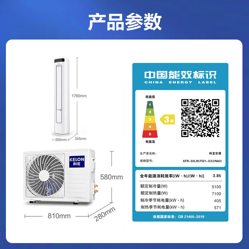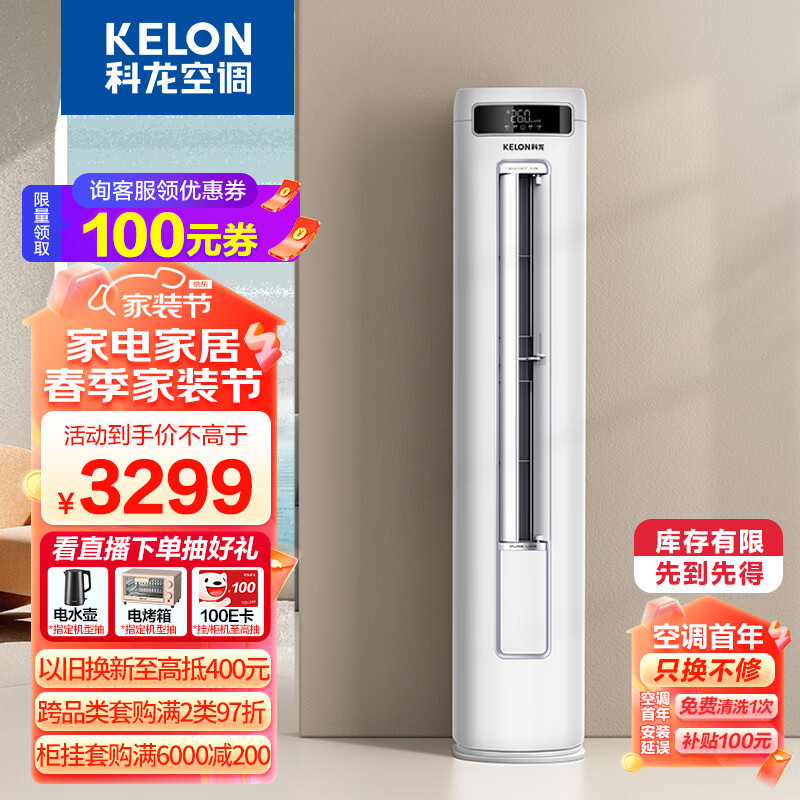 科龙(KELON)空调 2匹 新三级能效 百档调节 变频省电 急速冷暖 APP智能 圆柱立式柜机 客厅 KFR-50LW/FD1-X3价格:3299.00元!