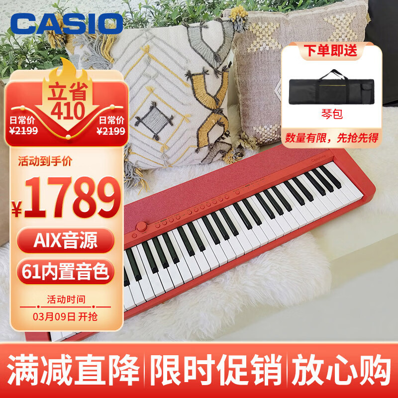卡西欧(CASIO)电子琴CTS1红色冰淇淋61键电子琴小仙琴时尚潮玩简易便携款价格:2199.00元!