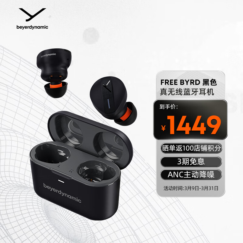 拜雅(beyerdynamic) 费兰朵 FREE BYRD 真无线主动降噪蓝牙耳机音乐入耳式 蓝牙5.2 黑色价格:1699.00元!