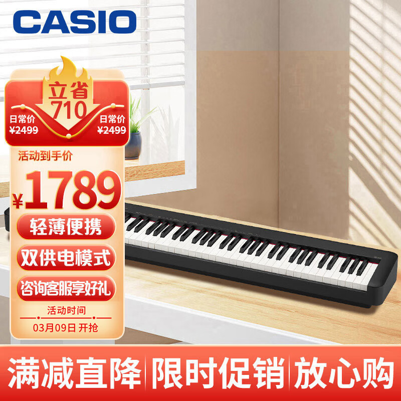 卡西欧(CASIO)电钢琴CDPS110黑色88键重锤数码电子钢琴时尚轻薄便携单机款价格:2499.00元!