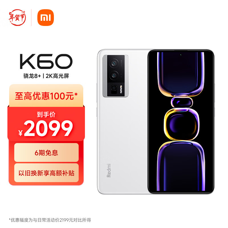 小米(MI)Redmi K60 骁龙8+处理器 2K高光屏 6400万超清相机 5500mAh长续航 12GB+256GB 晴雪 小米红米5G价格:2099.00元!
