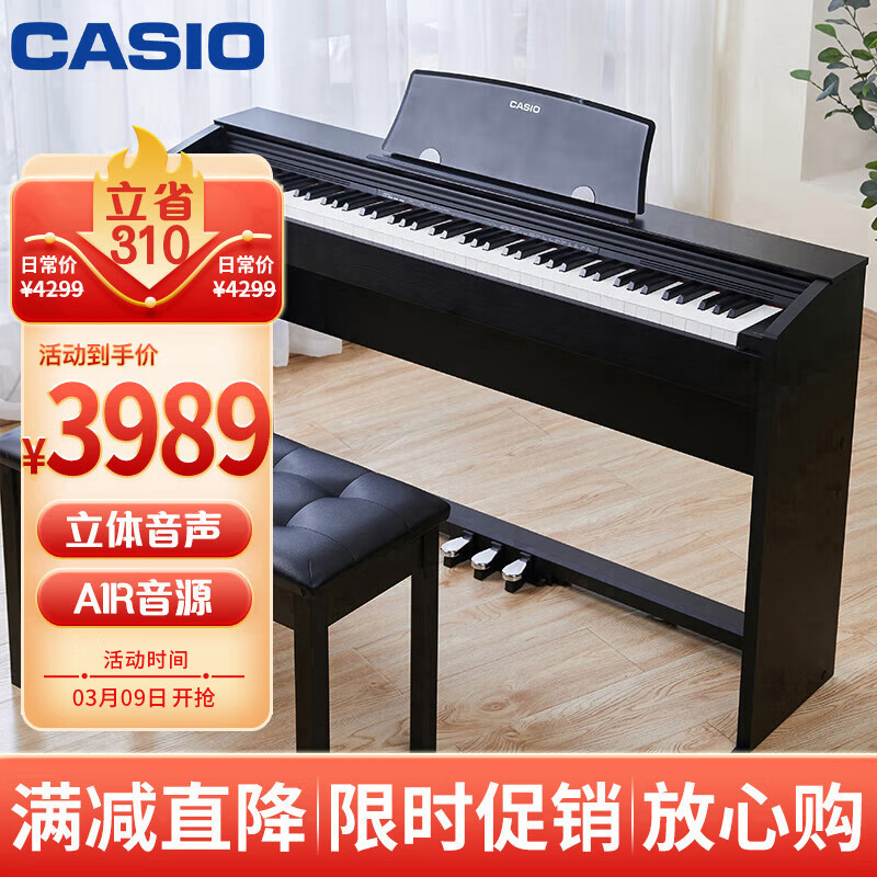 卡西欧(CASIO)电钢琴88键重锤数码钢琴家居立式PX770黑色套装专业家庭教学+琴凳价格:4299.00元!