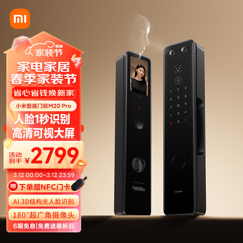小米智能门锁M20Pro 3D人脸识别 可视猫眼大屏指纹锁电子锁密码锁价格:2799.00元!