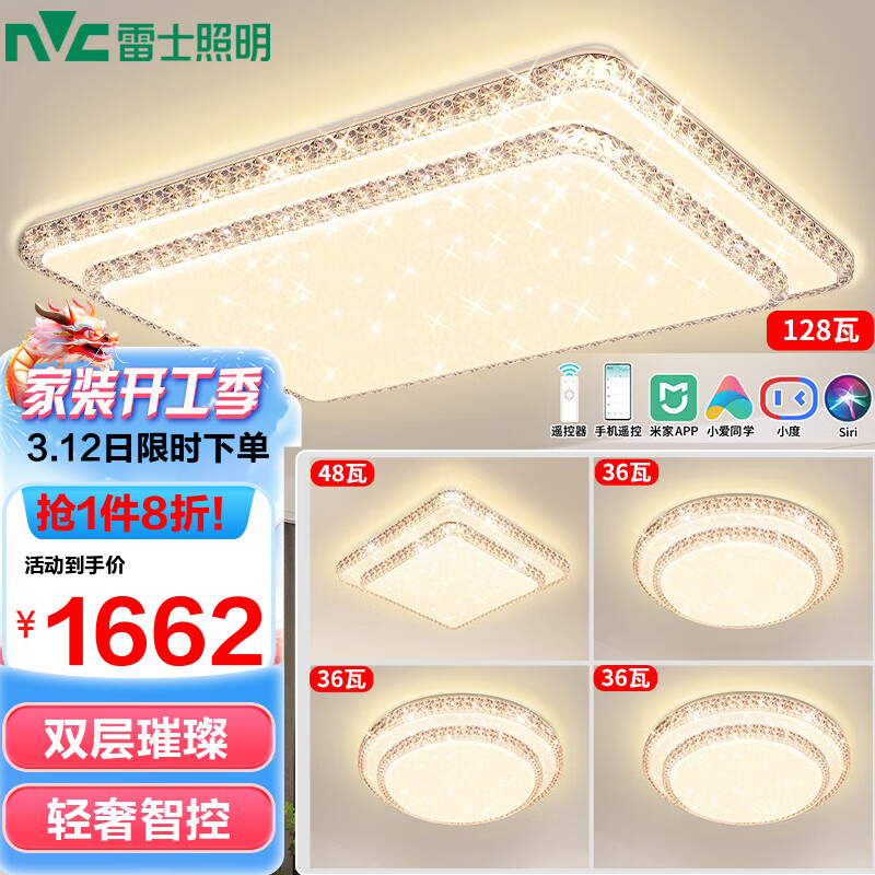 雷士(NVC)LED传统吸顶灯 现代风格客厅餐厅卧室灯具 AI智控满天星灯饰价格:2373.00元!
