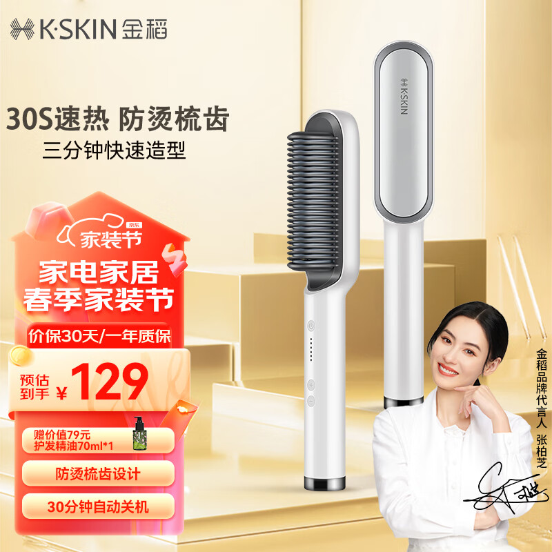 金稻直发梳夹板内扣卷发棒直板夹造型梳子 三分钟快速造型30秒速热恒温护发生日礼物女 KD380白色价格:179.00元!