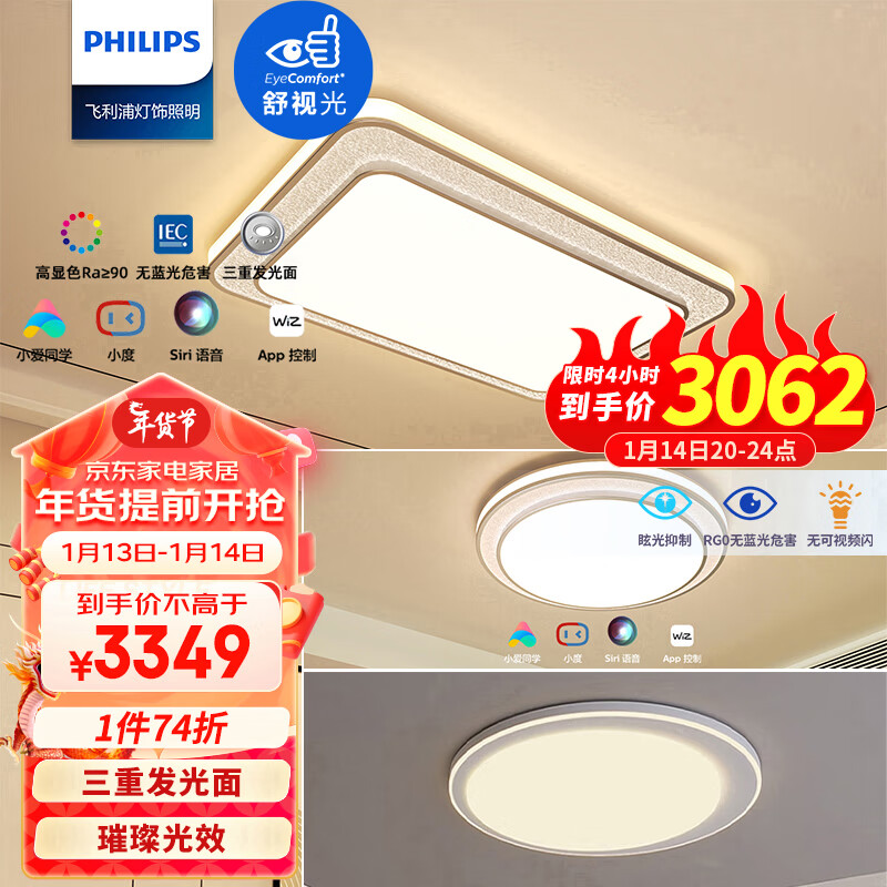 飞利浦led吸顶灯超薄客厅灯餐厅卧室灯智控调光灯具套餐两室一厅 悦恒价格:4799.00元!