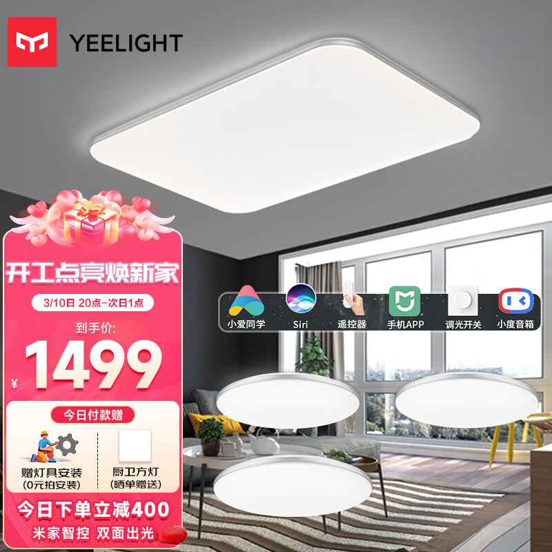 Yeelight灵犀led灯吸顶灯 支持米家智能灯具 客厅卧室灯具套餐3室1厅B价格:1899.00元!