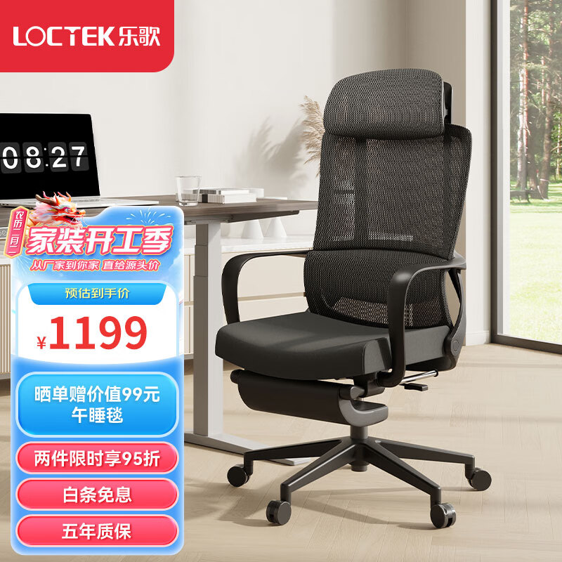 乐歌(Loctek)人体工学电脑椅子 办公椅 会议椅 家用转椅 座椅 午休椅Y32价格:1089.00元!