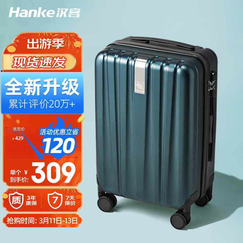 汉客行李箱男拉杆箱女登机旅行箱20英寸墨绿色密码箱镇店之宝再次升级价格:419.00元!