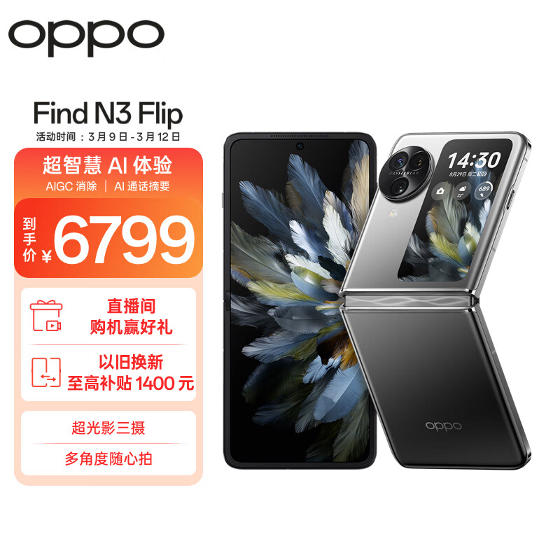 OPPO Find N3 Flip 12GB+512GB 镜中之夜 超光影三摄 专业哈苏人像 120Hz屏 5G 拍照 AI 小折叠屏手机价格:6799.00元!