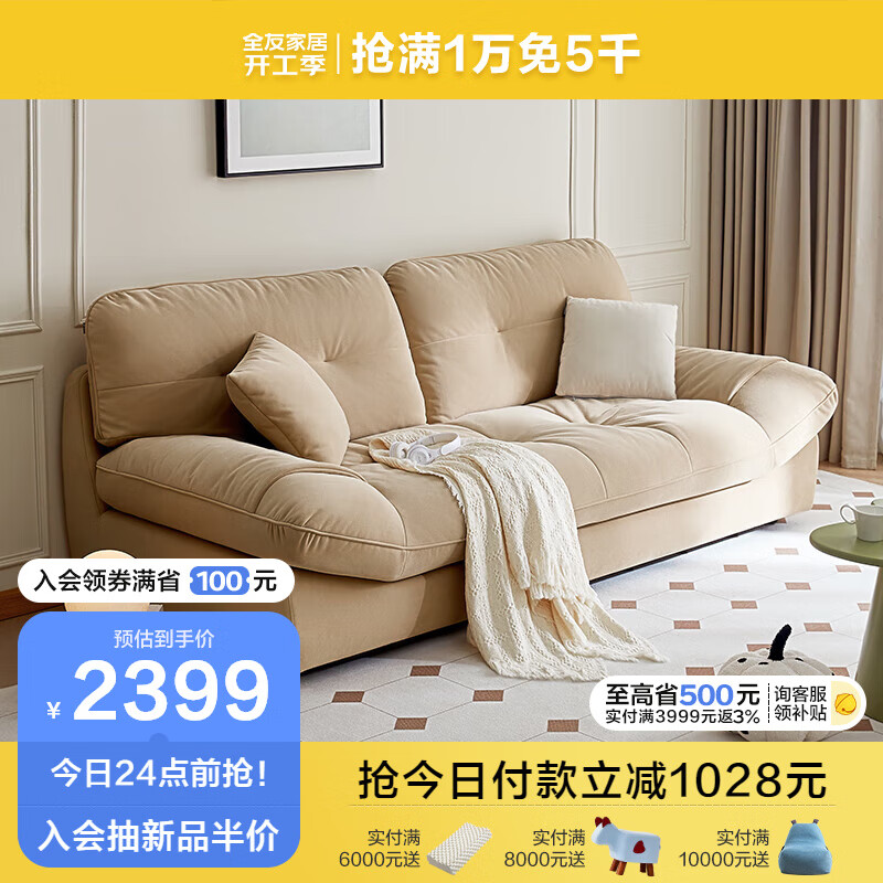 全友家居 简约风布艺沙发小户型客厅猫爪布云朵直排双人沙发111039价格:3427.14元!