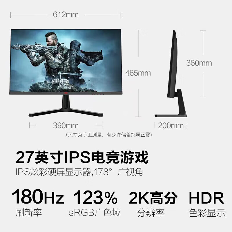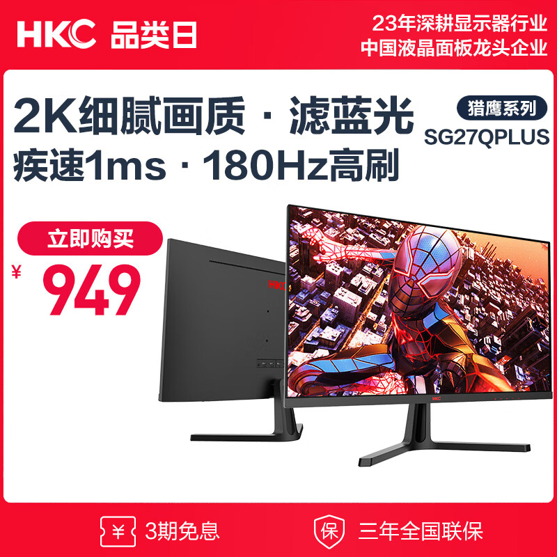 HKC 27英寸 2K高清180Hz IPS技术 HDR广色域 1Ms疾速响应 液晶电脑显示器 电竞游戏屏幕 SG27Qplus价格:1149.00元!
