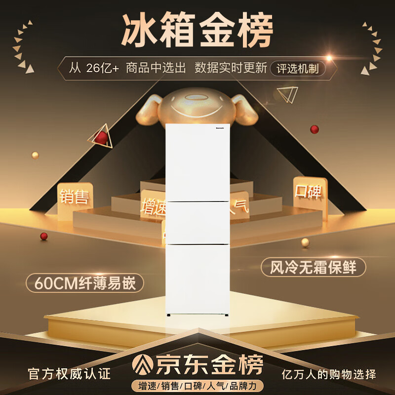 松下(Panasonic)265升家用三门冰箱 60cm超薄小 自由嵌入式 银离子kang菌 风冷无霜 磨砂白色NR-EC26WPA-W价格:2360.00元!