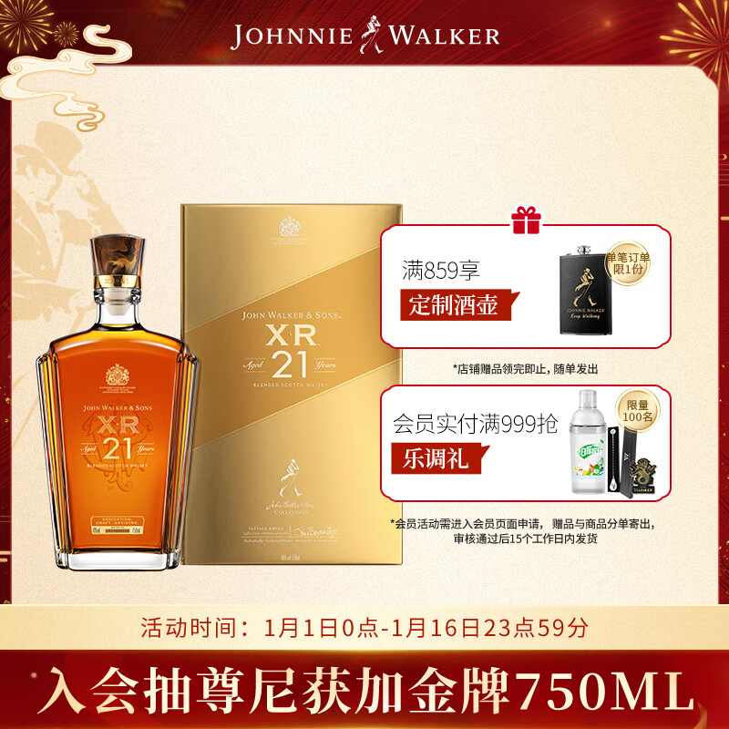 尊尼获加(JOHNNIE WALKER)【节日送礼】XR 21年 苏格兰 调和型 威士忌 洋酒 750ml价格:746.00元!