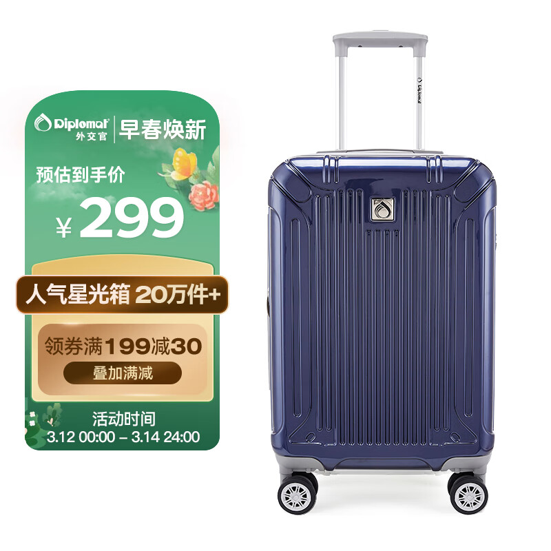 Diplomat外交官行李箱20英寸扩充层拉杆箱男旅行箱登机密码箱女TC-6012蓝价格:399.00元!