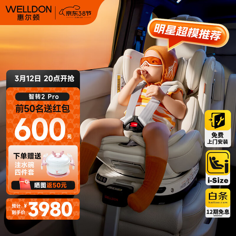 惠尔顿(Welldon)智转2Pro婴儿童座椅0-4-7岁全龄i-Size智能巡航车载360度旋转价格:3980.00元!