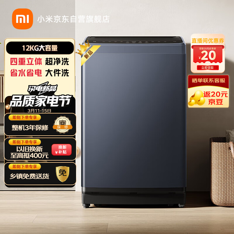 米家小米波轮全自动洗衣机租房宿舍 12KG超大容量四重立体超净洗24小时预约省水省电 XQB120MJ301价格:998.00元!
