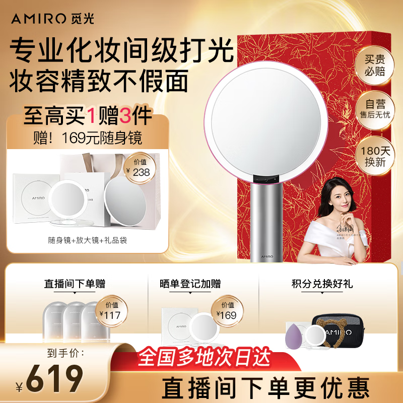 AMIRO觅光化妆镜带灯led日光梳妆美妆镜子补光智能高清台式便捷 生日礼物 送女生送老婆 丝绒红礼盒价格:769.00元!