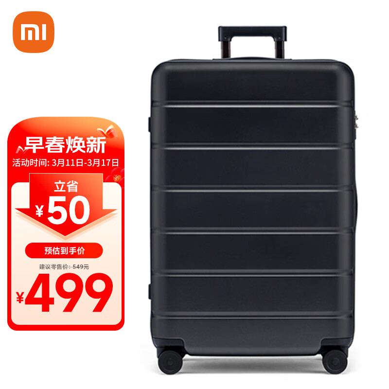 小米行李箱男大容量拉杆箱28英寸防刮耐磨旅行箱耐用女密码箱黑色价格:499.00元!