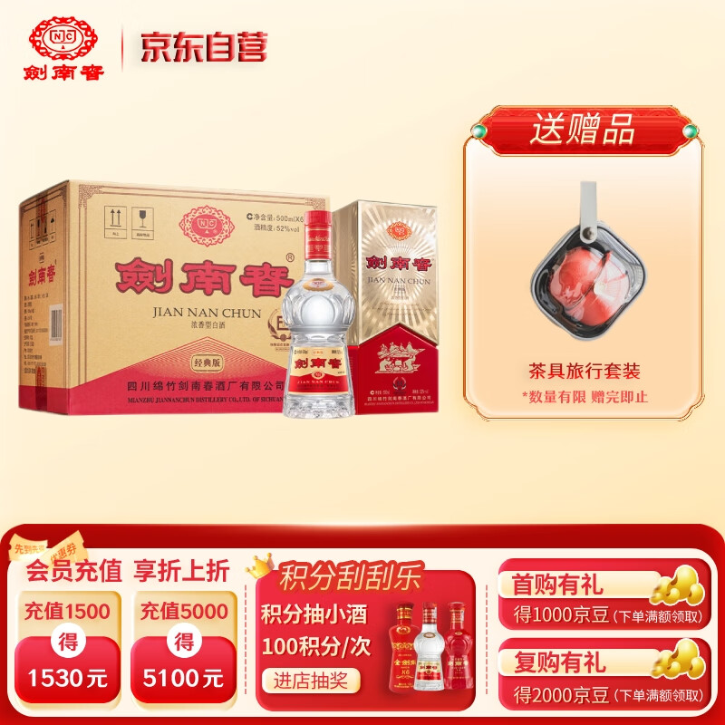剑南春 经典版 52度 500ml*6瓶 整箱装 浓香型白酒 佛光版价格:3528.00元!