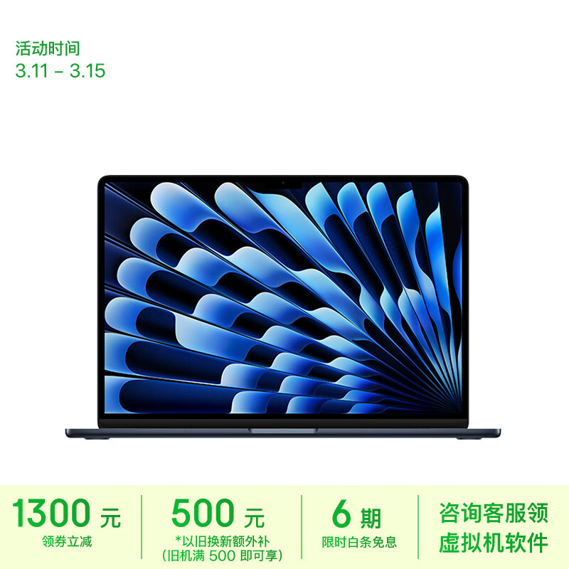 Apple/苹果2023款MacBookAir 15英寸 M2(8+10核)16G 256G午夜色轻薄笔记本电脑Z18T0002E【定制】价格:11999.00元!